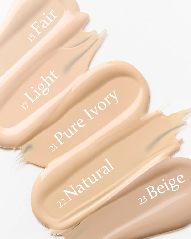 21 Pure Ivory: Water, Titanium Dioxide (CI 77891), Cyclopentasiloxane, Glycerin, Butylene Glycol Dicaprylate/Dicaprate, Trimethylsiloxysilicate, Pentaerythrityl Stearate/Caprate/Caprylate/Adipate, Lauryl PEG-10 Tris(Trimethylsiloxy)silylethyl Dimethicone, Isododecane, Niacinamide, 1,2-Hexanediol, Iron Oxide Yellow (CI 77492), Cetyl PEG/PPG-10/1 Dimethicone, Prunus Serrulata Flower Extract, Paeonia Albiflora Flower Extract, Diphenylsiloxy Phenyl Trimethicone, Polyglyceryl-3 Polydimethylsiloxyethyl Dimethicone, Magnesium Sulfate, Disteardimonium Hectorite, Octyldodecanol, Acrylates/Stearyl Acrylate/Dimethicone Methacrylate Copolymer, Aluminum Hydroxide, Triethoxycaprylylsilane, Stearic Acid, Alumina, Polyhydroxystearic Acid, Polyglyceryl-4 Isostearate, Isopropyl Titanium Triisostearate, Adenosine, Trisodium Ethylenediamine Disuccinate, Neopentyl Glycol Diethylhexanoate, Dimethicone, Butylene Glycol, Cyanocobalamin, Lauryl PEG-9 Polydimethylsiloxyethyl Dimethicone, Tocopherol, Propanediol, Trisiloxane, Caprylyl Methicone, Caprylic/Capric Triglyceride, Hydrogenated Lecithin, Hydroxyacetophenone, Ceramide NP, Sodium Stearoyl Glutamate, Fragrance, Linalool, Limonene, Mica (CI 77019), Iron Oxide Red (CI 77491), Iron Oxide Black (CI 77499)